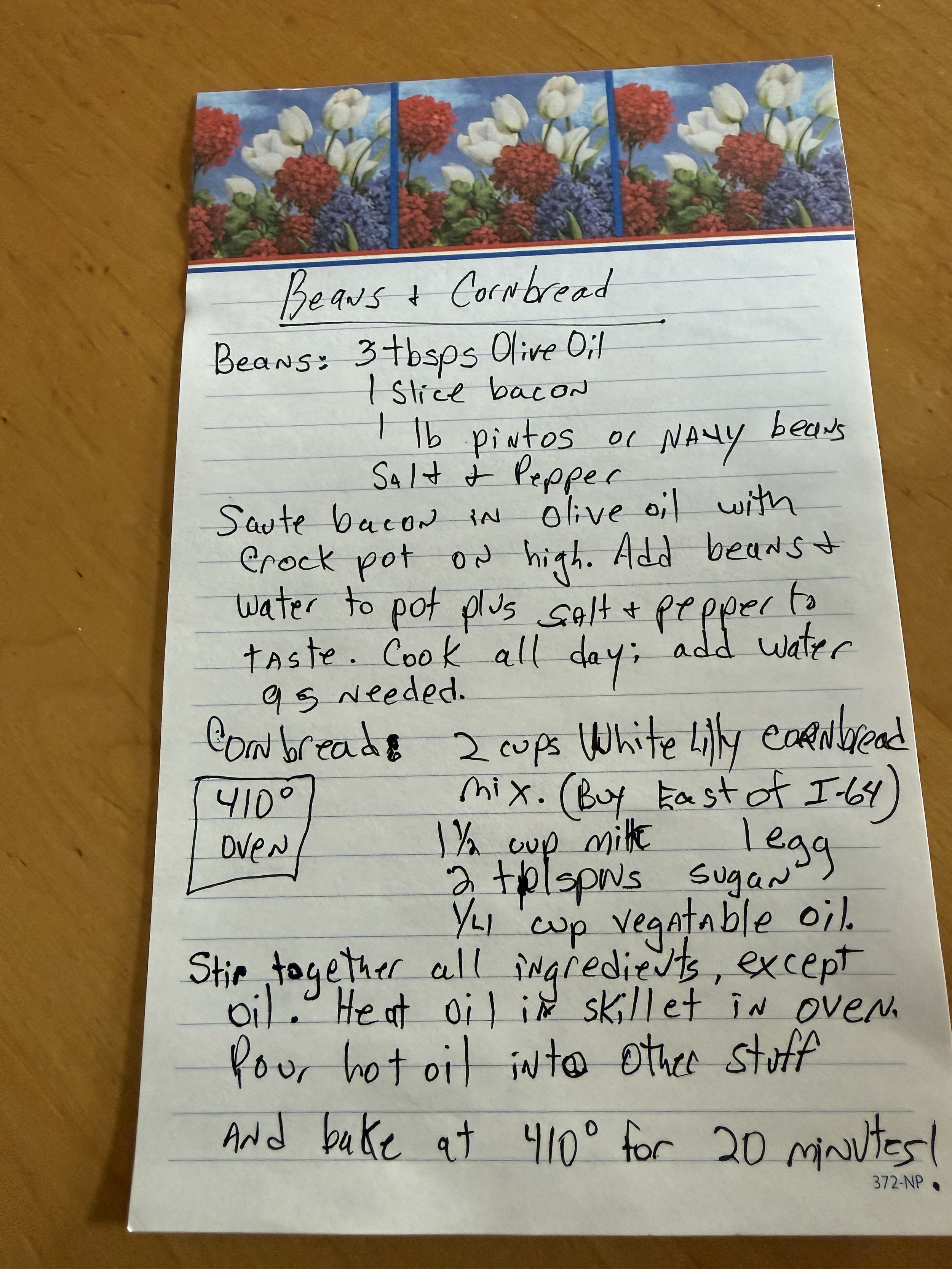 My mom’s cooking has a certain scent that makes me feel instantly at home, in resting state. Since her favorite meal of all time is beans & cornbread, well then so is mine. I hope when my daughter gets older, she’ll feel the same way about my food when she walks back in the door at home and smells it.