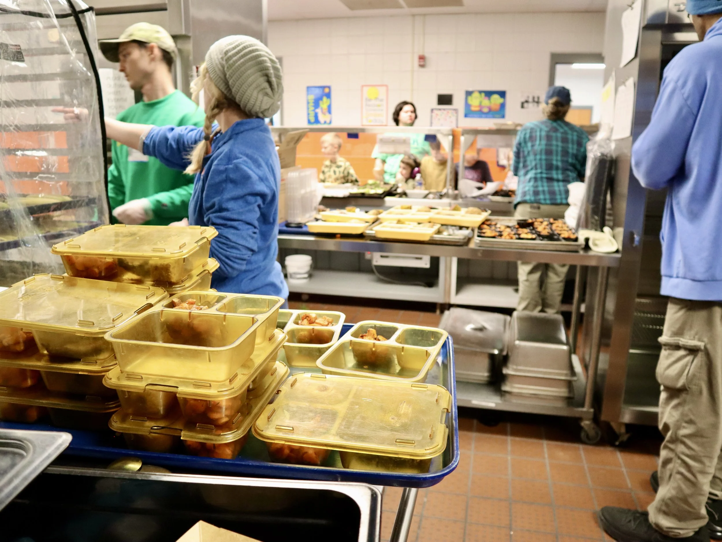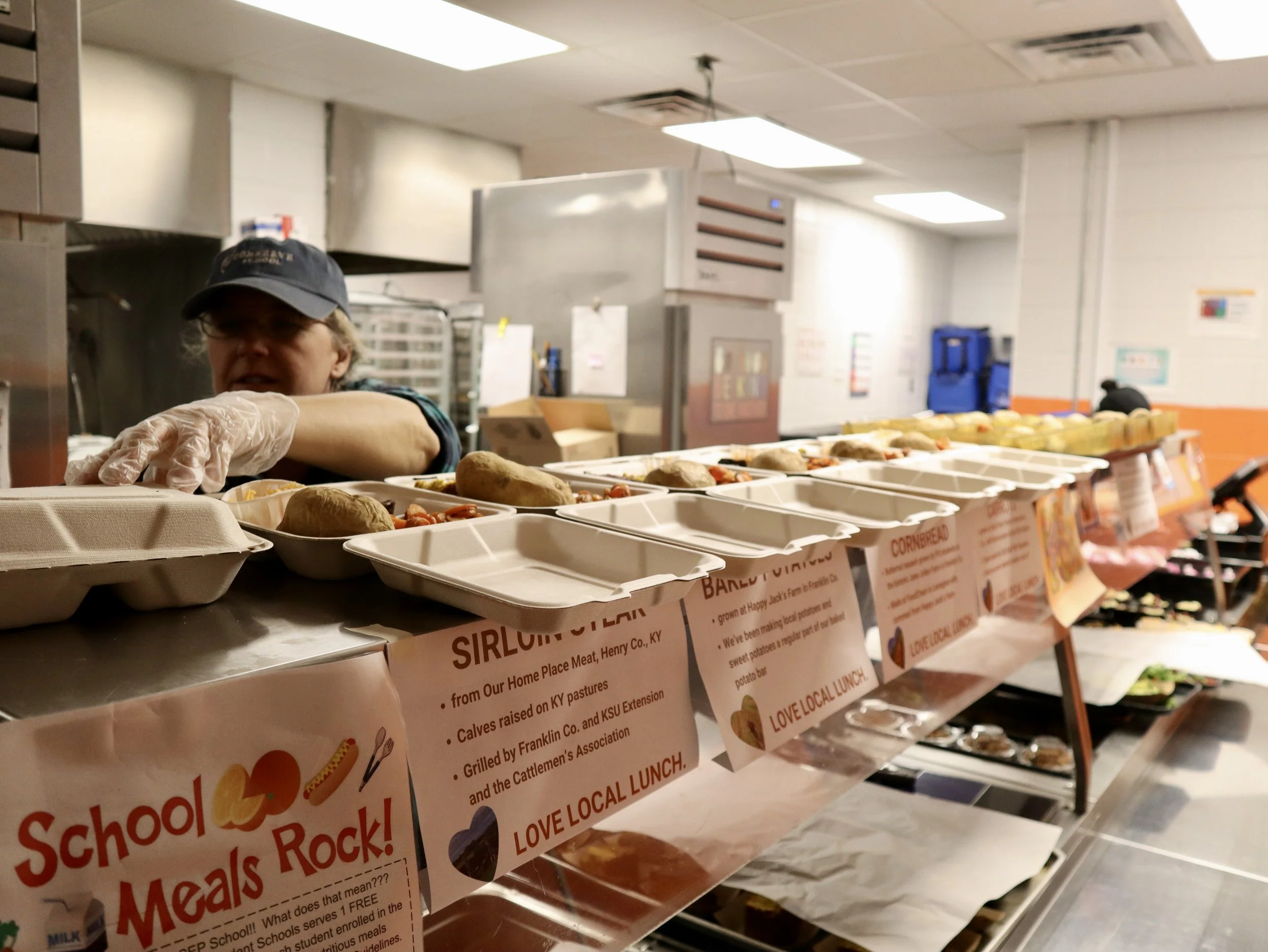 “Never have I ever thought I’d see a steak lunch in a grade school”, declared one of the first “customers” through the cafeteria line at Second Street School in downtown Frankfort. Yet there it was – a delicious array of grilled sirloin steaks, fat baked potatoes, butternut squash cornbread, thyme-roasted carrots, and fresh salad lettuces and microgreens.